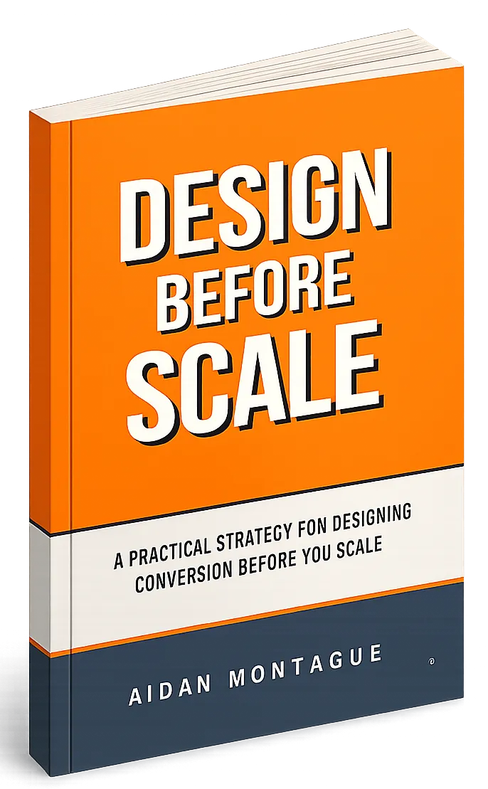 Design Before Scale reflects his focus on treating growth as a design problem - identifying conversion constraints upstream, before effort and spend compound friction.